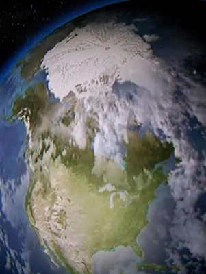 Chris, a courageous hollow earth enthusiast in Denver, Colorado was visiting the Space Odyssey exhibit at the Denver Museum of Nature and Science on April 23, 2011 where he found himself looking at a projection of the earth on a very large sphere. When one of the spectators asked the curator to rotate the poles downward so that he could look at his native state of Alaska, Chris went around to the less popular 'butt' end to see what he could see of Antarctica. To his shock and amazement he saw before him, in all its clarity, a well defined opening at the southern-most pole where one would expect to see the opening to the interior of the hollow earth. He quickly took two pictures (the other you can view here) which he then uploaded onto the web to share his experience and also his convictions about the hollow earth.